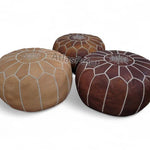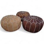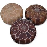 Add a touch of timeless Moroccan charm to your home with this handcrafted leather pouf, made using traditional artisan techniques and finished with intricate embroidery at the center. Carefully stitched from 100% genuine leather, each pouf is a unique piece of cultural craftsmanship that blends functionality with beauty.