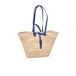Bring a pop of color to your everyday essentials with this handwoven straw tote, featuring vibrant leather handles in bold tones. This roomy and stylish bag is perfect for a day out, market visits, or summer getaways.